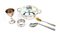 Servizio da pappa in argento composto da casseruola, cucchiaio, portatovagliolo, portauovo e cucchiaino con paletta dorata gr. 78