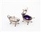 Coppia di saliere in argento con vaschetta in vetro blu di forma ovale con profilo cordonato, sorrette da quattro piedi ferini con attacco a mascherone; coperchio incernierato sormontato da pinnacolo, manico sagomato. Complete di cucchiaino 5x7,5x4,4 - gr. 82