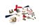 Lotto composto da vari piccoli oggetti e frammenti in argento coppia di segnapagina dell'argentiere Raspini, una maschera veneziana in miniatura, una chiave, una chiocciola con guscio in madreperla, sette frammenti natalizi diversi peso complessivo gr. 120 ca.