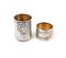 Bicchierino e portatovagliolo in argento caratterizzati da un medaglione ovale racchiuso da volute vegetali; lievi ammaccature cm 6x4,6 e diametro cm 4,5 - gr. 34