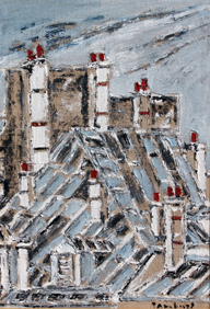 TAMBURI Orfeo Jesi 1910 - Parigi 1994 Tetti, 1980 olio su tela cm. 30 x 20...