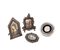 Quattro piccole cornici da tavolo diverse in argento e metallo argentato due di forma circolare rispettivamente con Madonna col Bambino e cammeo raffigurante profilo di Dante Alighieri ed una a forma di edicola traforata; la quarta in bronzo misure diverse