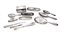 Lotto di due set da toletta in lamina d'argento composto da 5 spazzole di diverso formato, due specchi, un calzante, un allaccia stringhe, una lima, un tampone per inchiostro ed una scatola rettangolare
