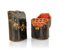Coppia di antichi cofanetti porta posate rivestiti in pelle con impressioni dorate