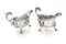 Due salsiere in argento con analoghe caratteristiche, Londra 1787, argentiere John Munns (attivo dal 1761) e Londra 1799 argentieri Peter & Anne Bateman (attivi dal 1792) corpo a navicella con orlo percorso da cordolo; manico ad arco con estremità a ricciolo, piedi arcuati con attacco a palmetta, poggianti su conchiglia cm 13x18x9 - gr. 668