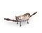 Navicella in argento con corpo percorso da scanalature ed orlo superiore mistilineo, caratterizzata da manici in legno tornito e poggiante su quattro gambe con piedi a zoccolo cm 6x24x6,5 - peso lordo gr. 74