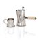 Egoiste con lattiera in argento, Scortecci corpo a tronco di cono con versatoio cilindrico e manico traverso in osso; profili dentellati altezza cm 13,5 e cm 5,5 rispettivamente - peso complessivo lordo gr. 362