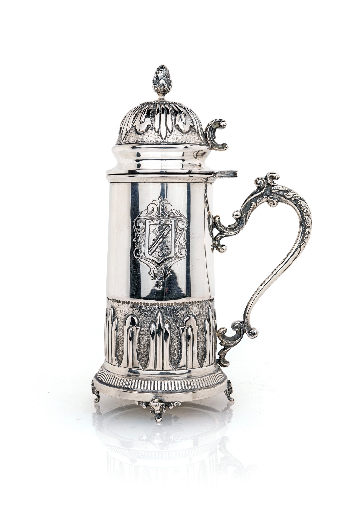 Tankard in argento, Milano 1950 ca. con stemma altezza cm 24 - gr. 560