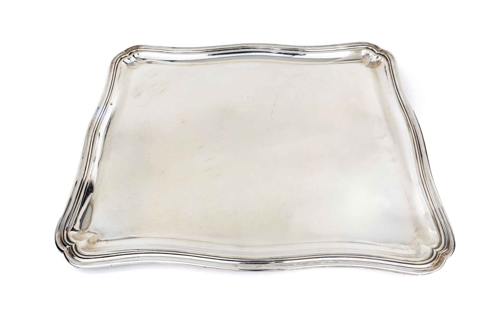 Vassoio rettangolare in argento, Boin Tabouret, Parigi, dopo il 1873 con profilo sagomato modanato ed angoli arrotondati. Francia, bollo di garanzia 1838 - 1973 cm 40x33 - gr. 1480