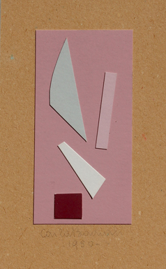 BADIALI Carla Novedrate (CO) 1902 - Como 1992 Composizione astratta, 1950 collage su cartone cm. 18 x 13 La misura è riferita alla parte interna centrale #Firma, data 'Carla Badiali, 1950' (in basso al centro) #Tecnica, data, firma 'Collage su cartone vegetale, opera unica, 1950, per autentica Carla Badiali, Como 1980'; #etichetta e timbro di Valente Arte Contemporanea, Finale Ligure (al retro) Bibliografia: L.Cavadini 'Carla Badiali - Catalogo generale', Silvana Editoriale, p.89