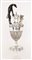 Corpo ad anfora impreziosito nella parte inferiore da lunghe foglie lanceolate minuziosamente cesellate; un corteo di amorini in bassorilievo ritratti in molteplici attitudini si dispone lungo la fascia superiore al limite della spalla, su cui si erge il collo sormontato da coperchio incernierato dominato da una ghianda; alla base del collo si erge la figura del levriero che funge da manico e, diametralmente opposto, siede un tritone dalla lunga barba, le cui code posano sull'orlo e lungo la fascia, ritratto nell'atto di soffiare in una bucina che funge da beccuccio. Piede circolare liscio.