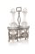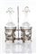 Acetoliera in argento, Roma, XVIII secolo presa centrale traforata costituita da motivi geometrici, alloggi cilindrici definiti da anelli con fascia traforata ad onde e orli perlinati, sostenuti da lesene scanalate riunite da ghirlande vegetali, piedi ferini. Bolli consunti cm 22x16x6,5 - gr. 348