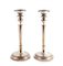 Coppia di candelieri in argento, Roma, Stato Pontificio, dopo il 1815, argentiere Stefano II Sciolet attivo dal 1826 al 1869 fusto liscio rastremato sormontato da una sfera su cui posa la coppa reggicandela trattenuta da una corolla con lunghi petali; piede circolare gradinato racchiuso da ghirlanda d'alloro sbalzata ed incisa altezza cm 29 - gr. 662
