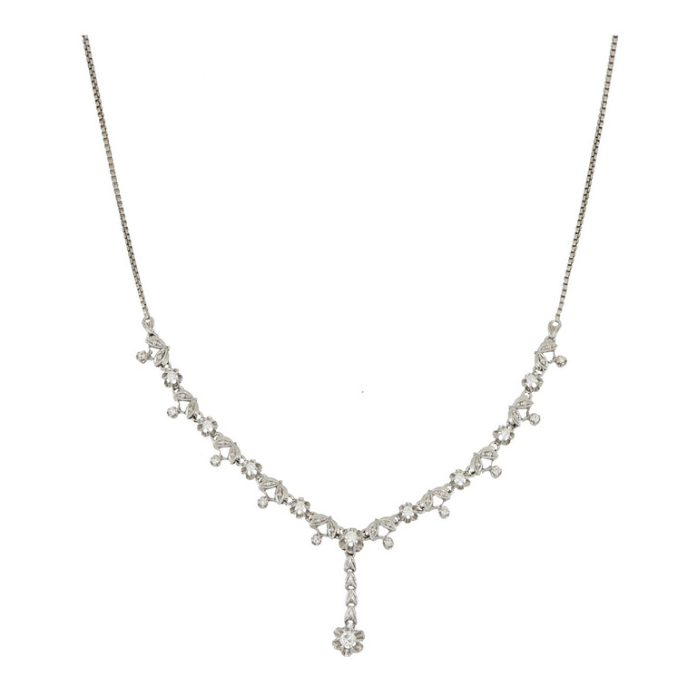Collier in oro bianco con diamanti 8/8 e il centrale di taglio moderno.