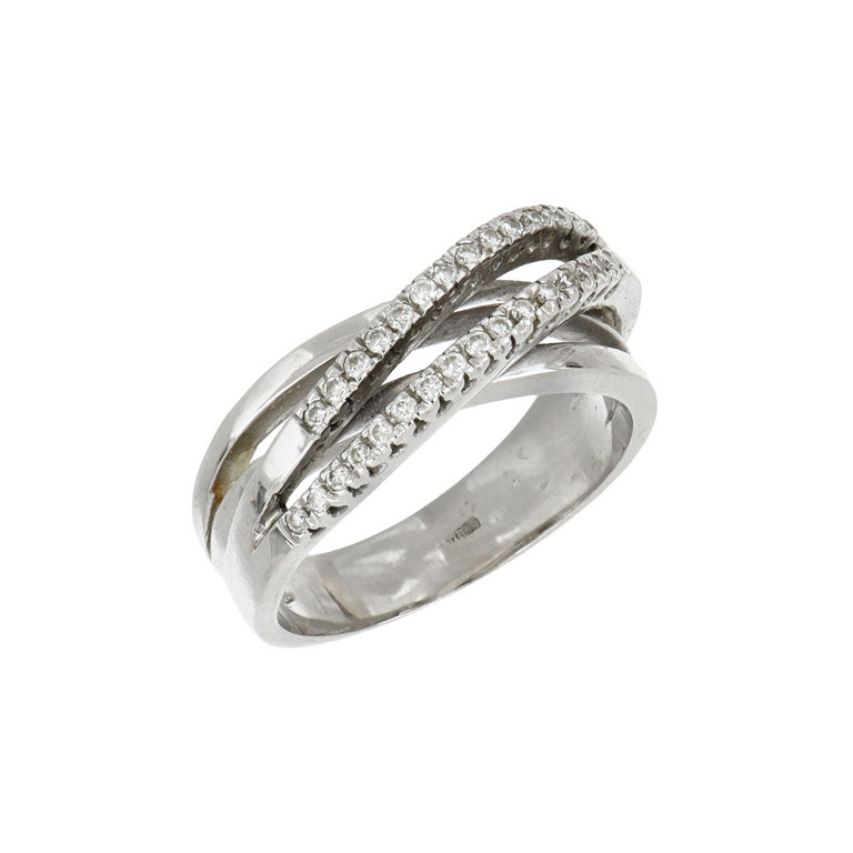 Anello in oro bianco con piccoli diamantini per un totale di circa 0 30 ct.