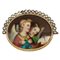 Antica spilla con grande miniatura ovale in oro rosso e argento ornata da castoni con diamanti di taglio antico per metà della voluta bordo inciso a bulino.