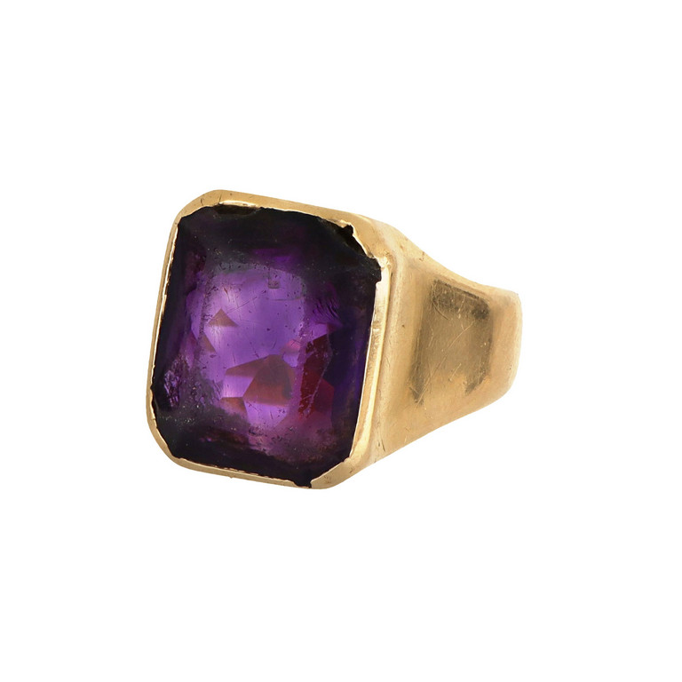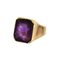 Anello in oro giallo a fascia con grande ametista incastonata al centro.