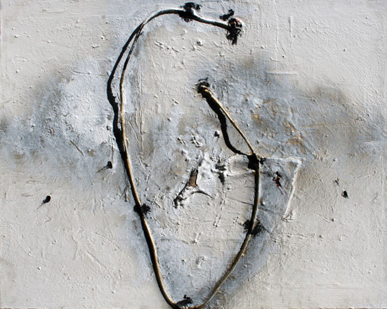 CARMASSI Arturo Lucca 1925 Suite Satie V, 2005 collage, cartone, filo di ferro, encausto su tela riportato su tavola cm. 73 x 92 Firma, titolo, data 'Carmassi, Suite Satie V, 2005' (al retro) Autentica dell'artista su fotografia Bibliografia: M. Pizziolo, A. Vanni, 'Arturo Carmassi dipinti, sabbie, collages', catalogo della mostra a Terni, 29 maggio-30 giugno 2005, Luciano Vanni Editore, rif. 40