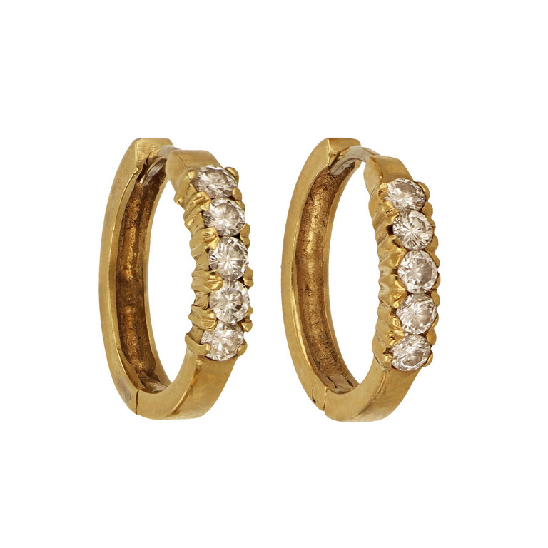 Orecchini in oro giallo a piccole anelle con piccoli cubic zirconia.