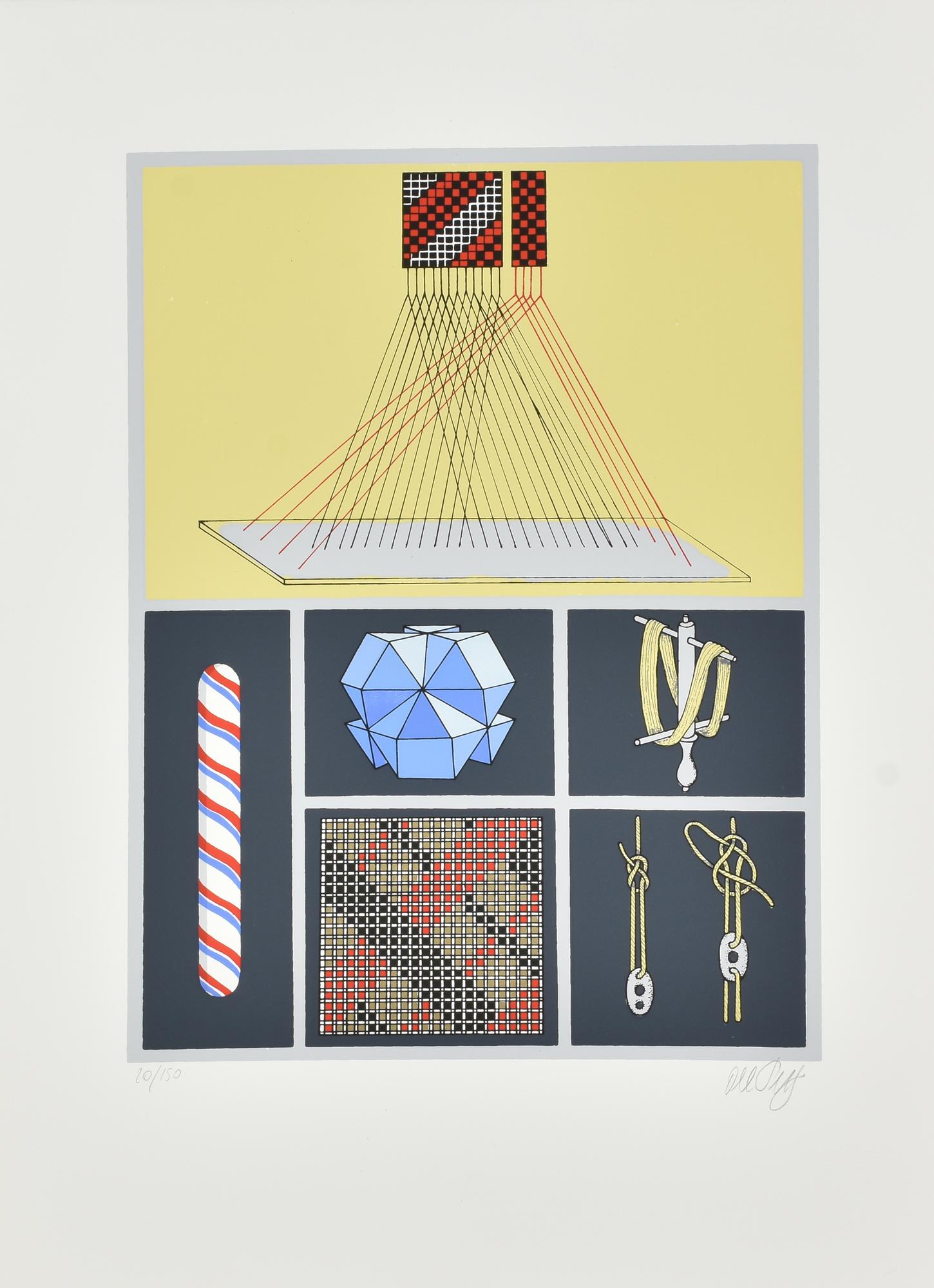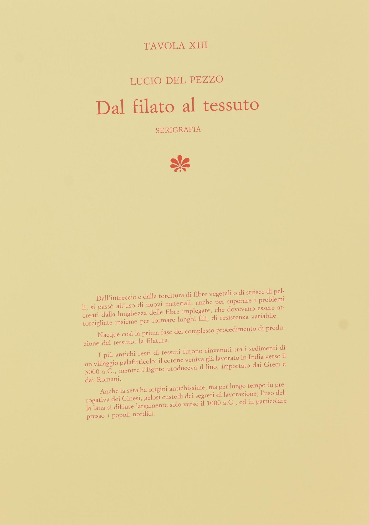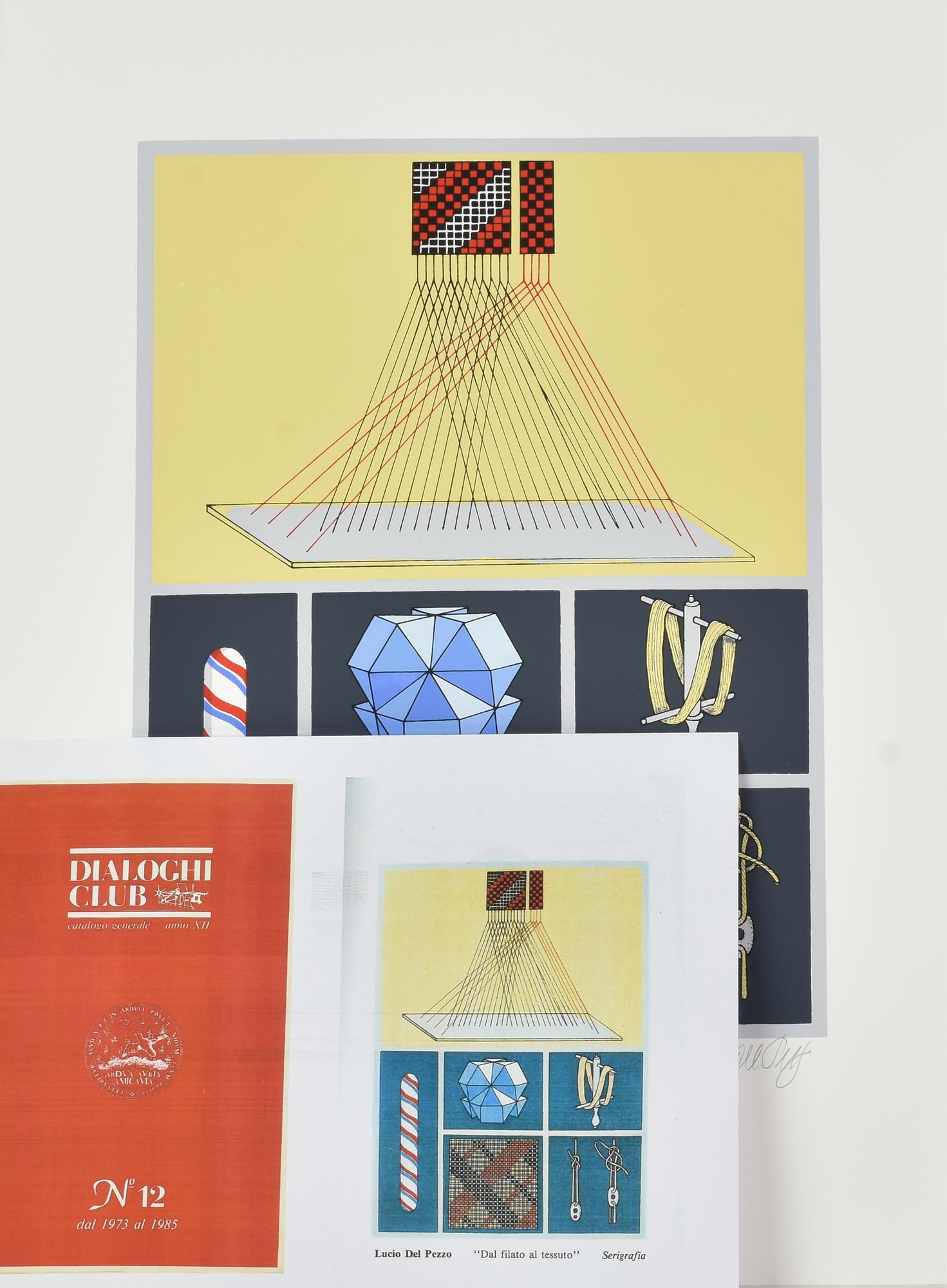 Lucio Del Pezzo (1933 - 2020) DAL FILATO AL TESSUTO serigrafia, cm 50x35; es....