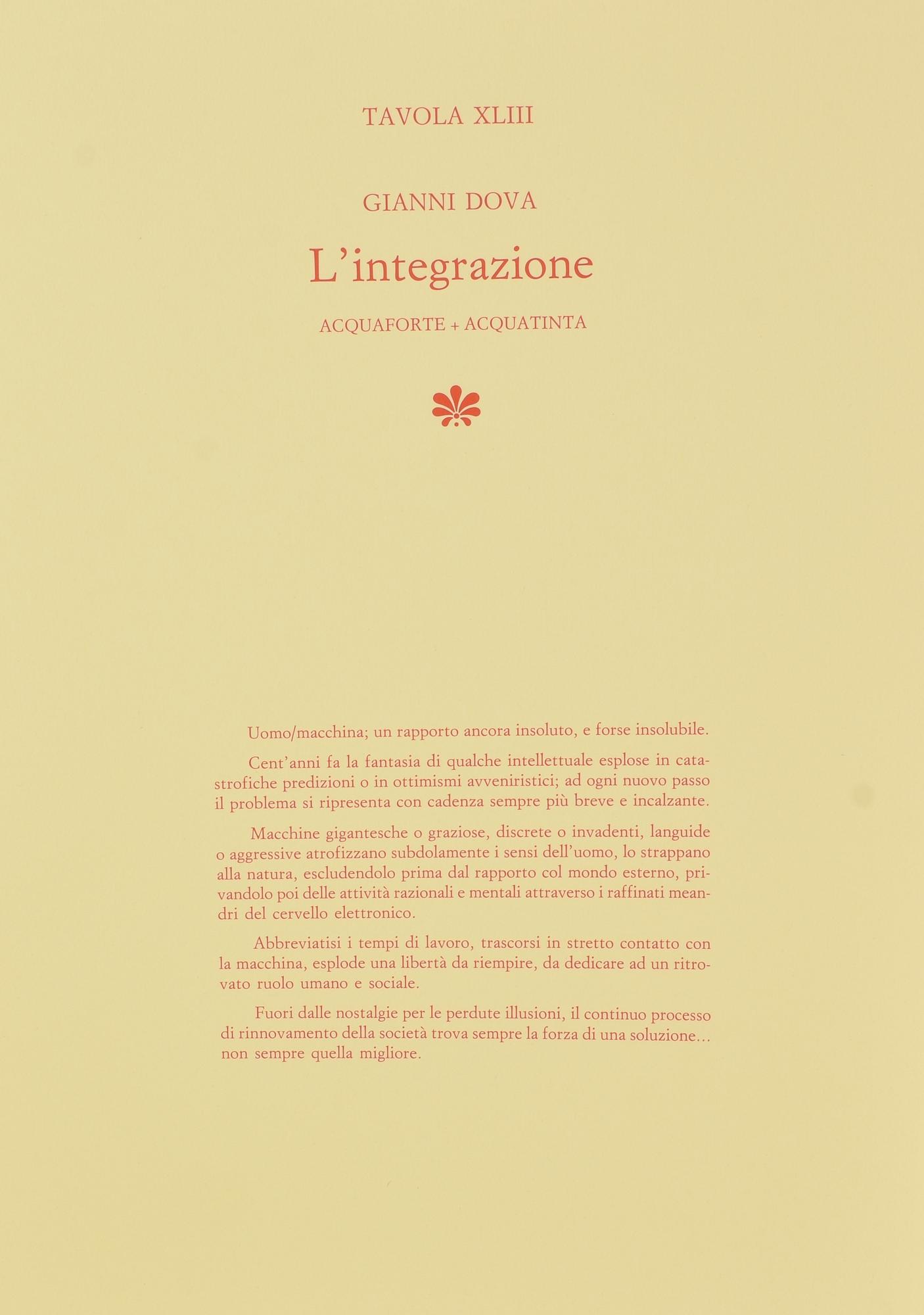 Lotto 69 | Gianni Dova (1925 - 1991) L'INTEGRAZIONE acquaforte-acquatinta, cm 17x25,2,...