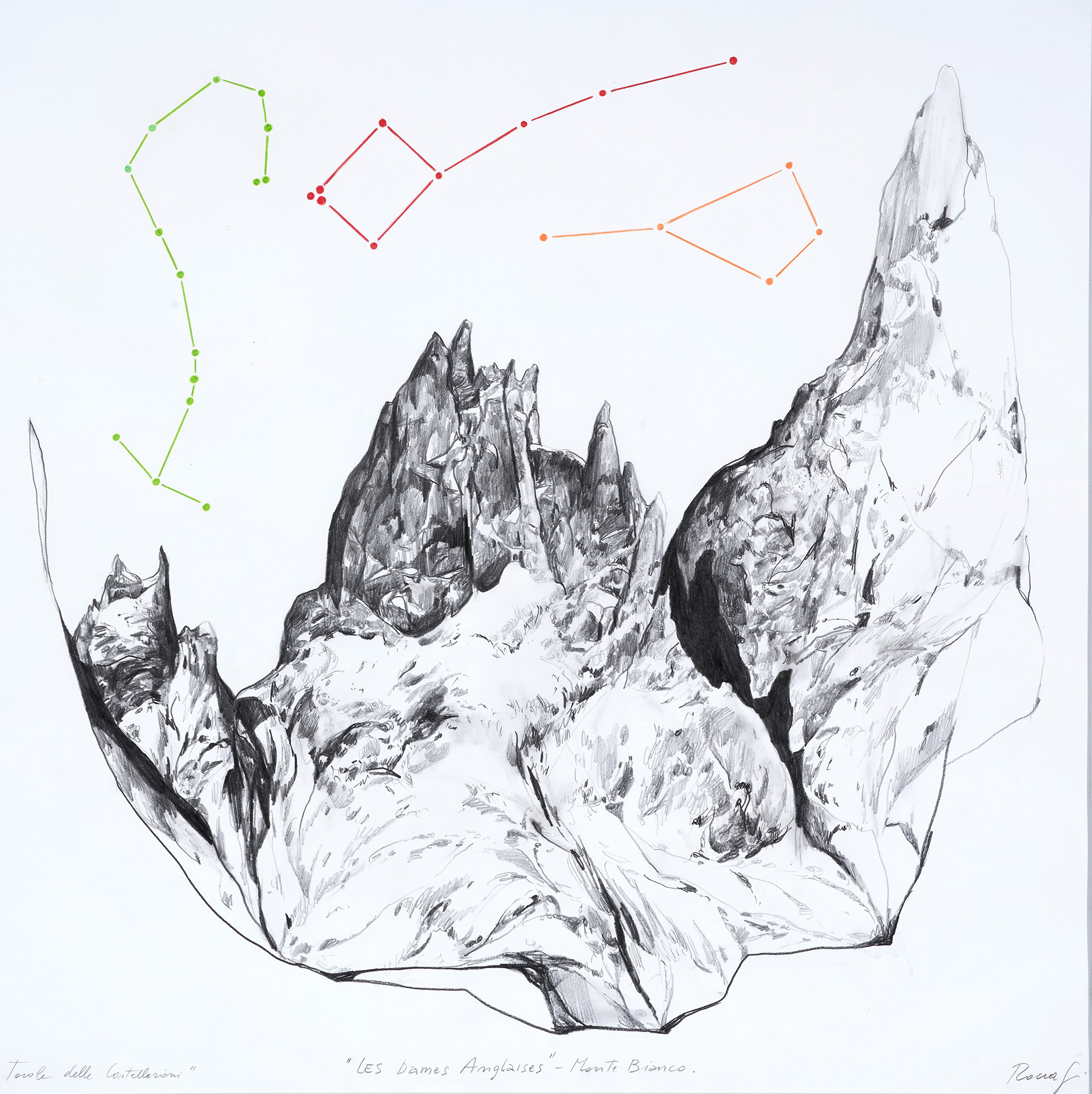 Scritta, titolo e firma in basso: "Tavole delle costellazioni" "Les Dames Anglaises" - Monte Bianco Rocca G.;