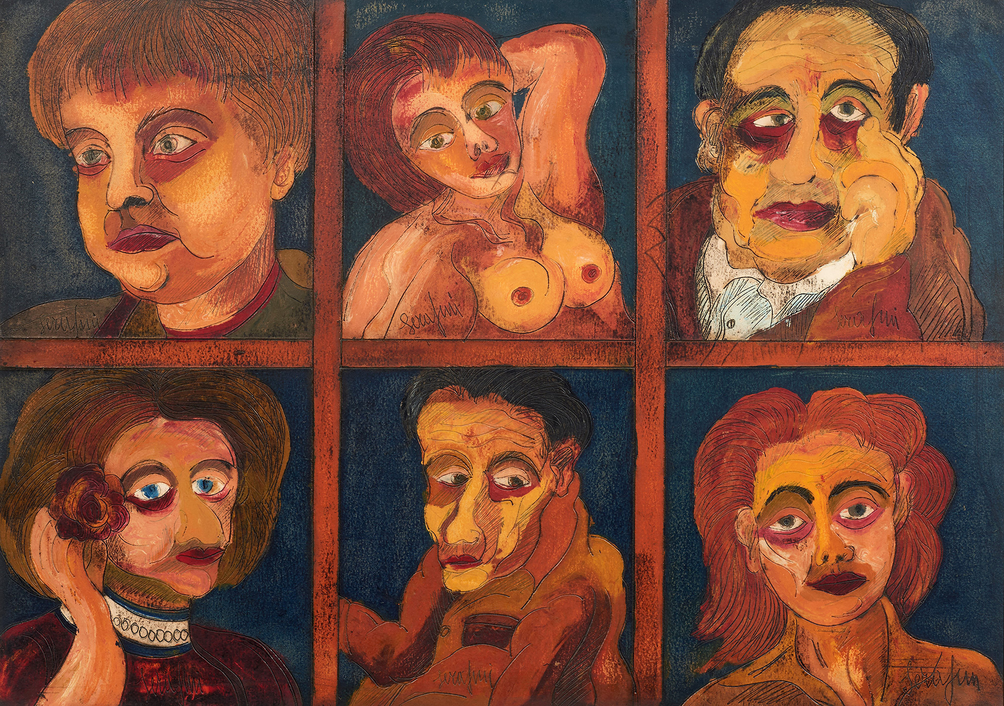 Firma in basso a destra: Serafini; titolo e firma al verso: 6 figure / Serafini Giuseppe.