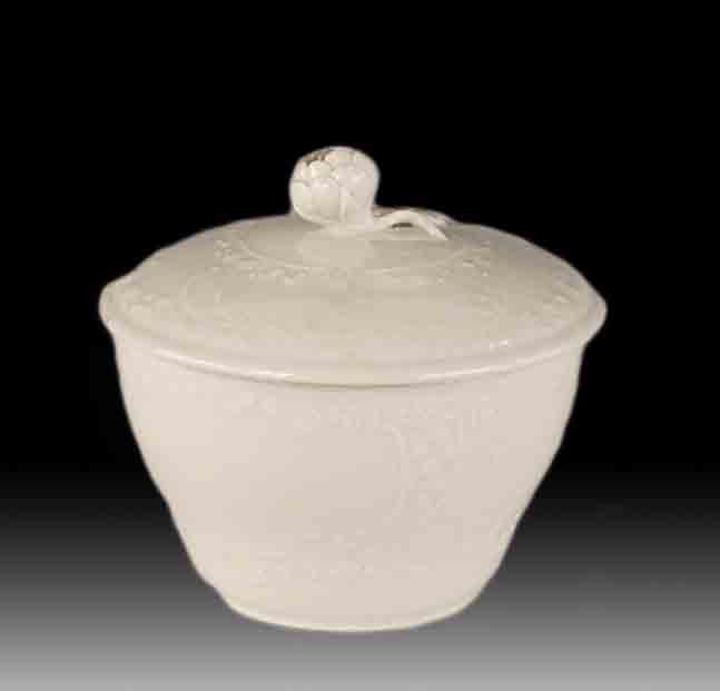 Zuccheriera in porcellana Meissen con coperchio, di forma circolare, decorata...