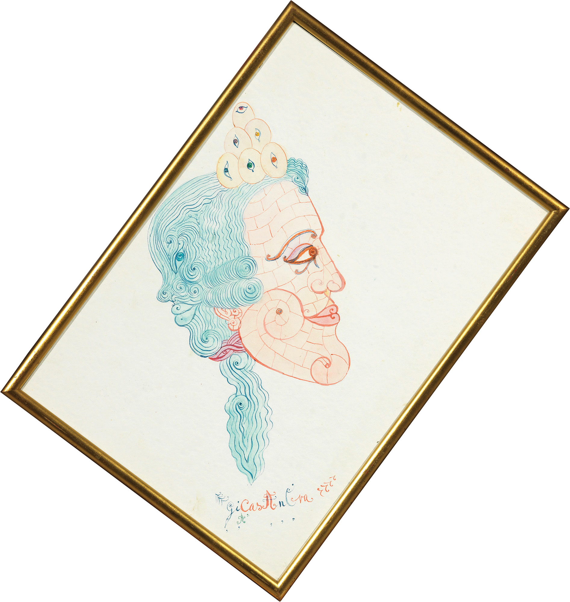 Titolo in basso: «Giàcasanova»; monogramma, data, luogo e scritta al verso: Luigi Ontani / 2002 / Bali / bomba: autoritratto dell'artista su carta applicata al verso.
