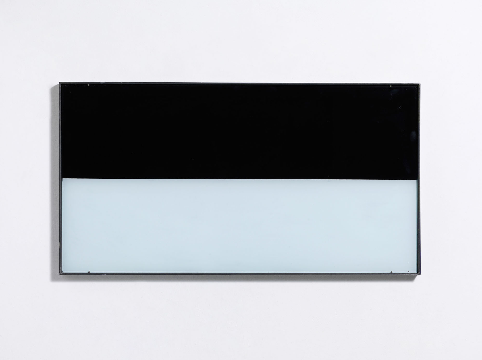 Smalto su cristallo, cornice di ferro, cm. 46 x 86 x 4