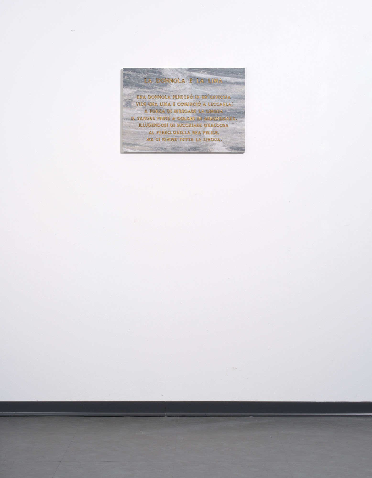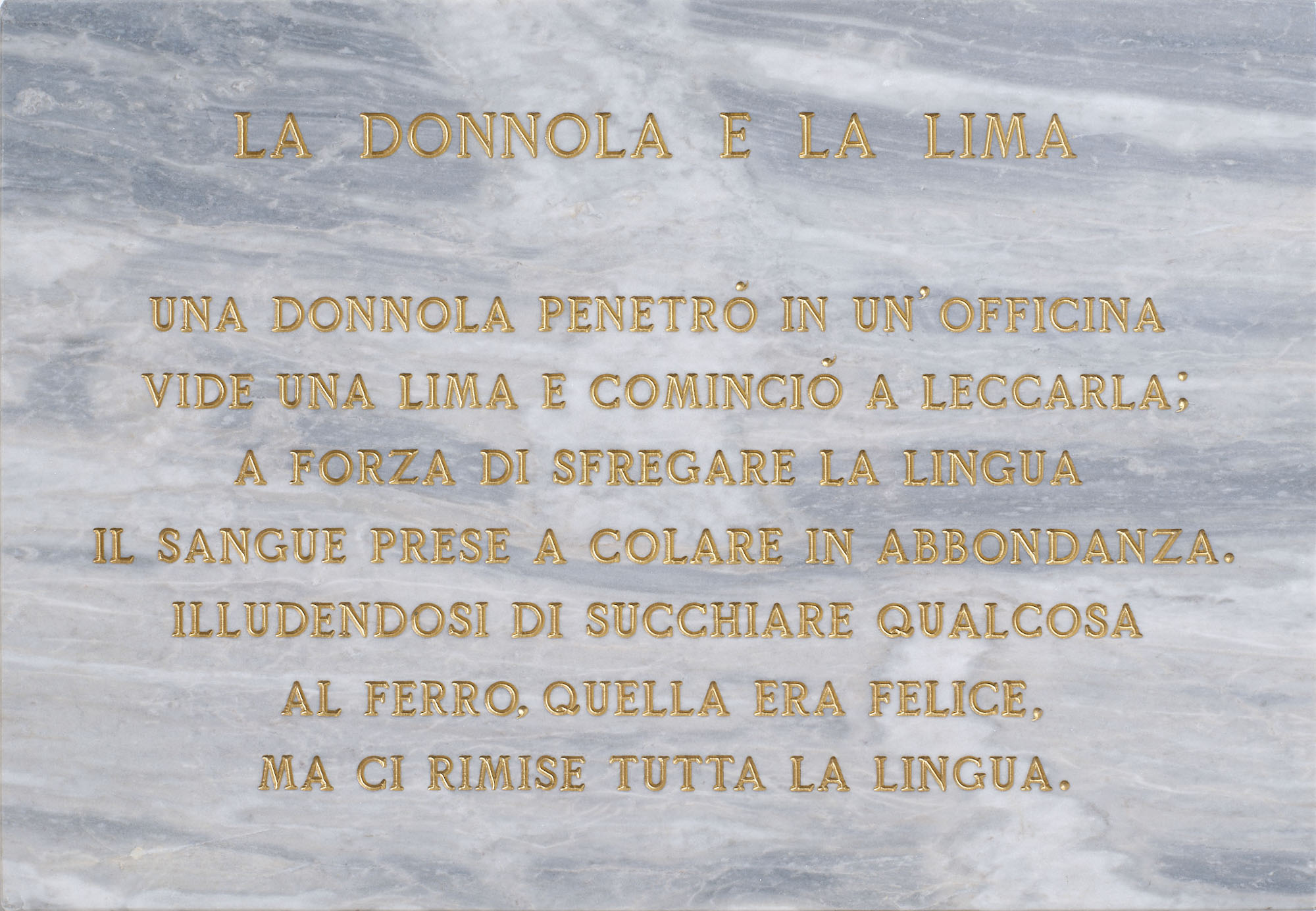 Lapide in marmo incisa e dipinta, cm. 45 x 65