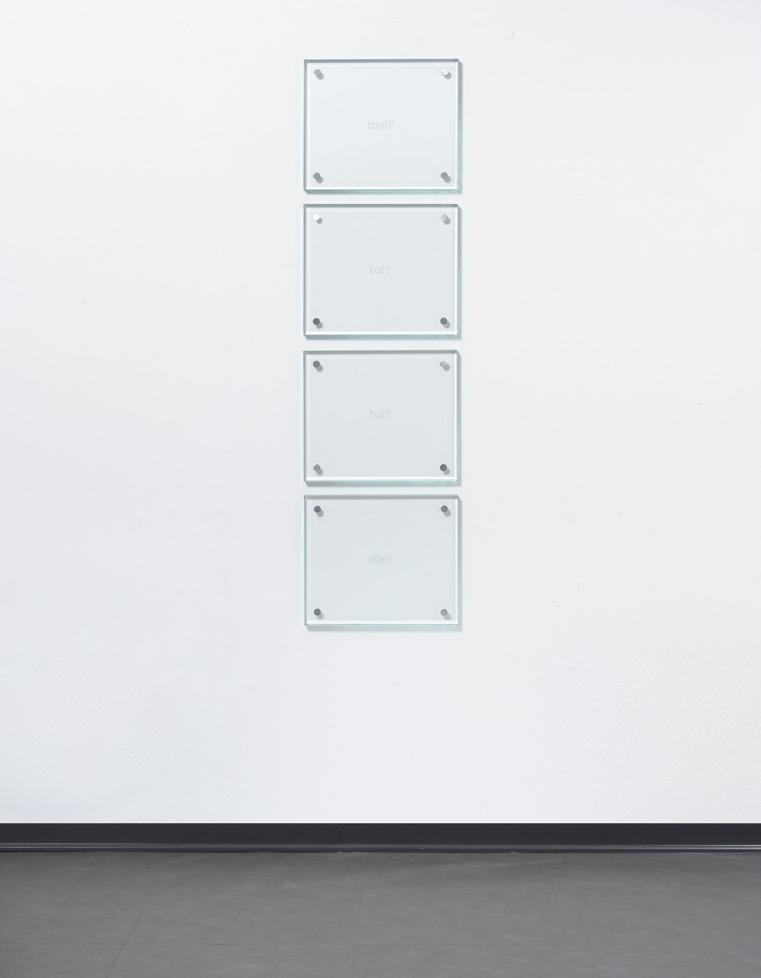 4 elementi in vetro sabbiato, viti in metallo, cm. 28 x 33 x 2 cad.