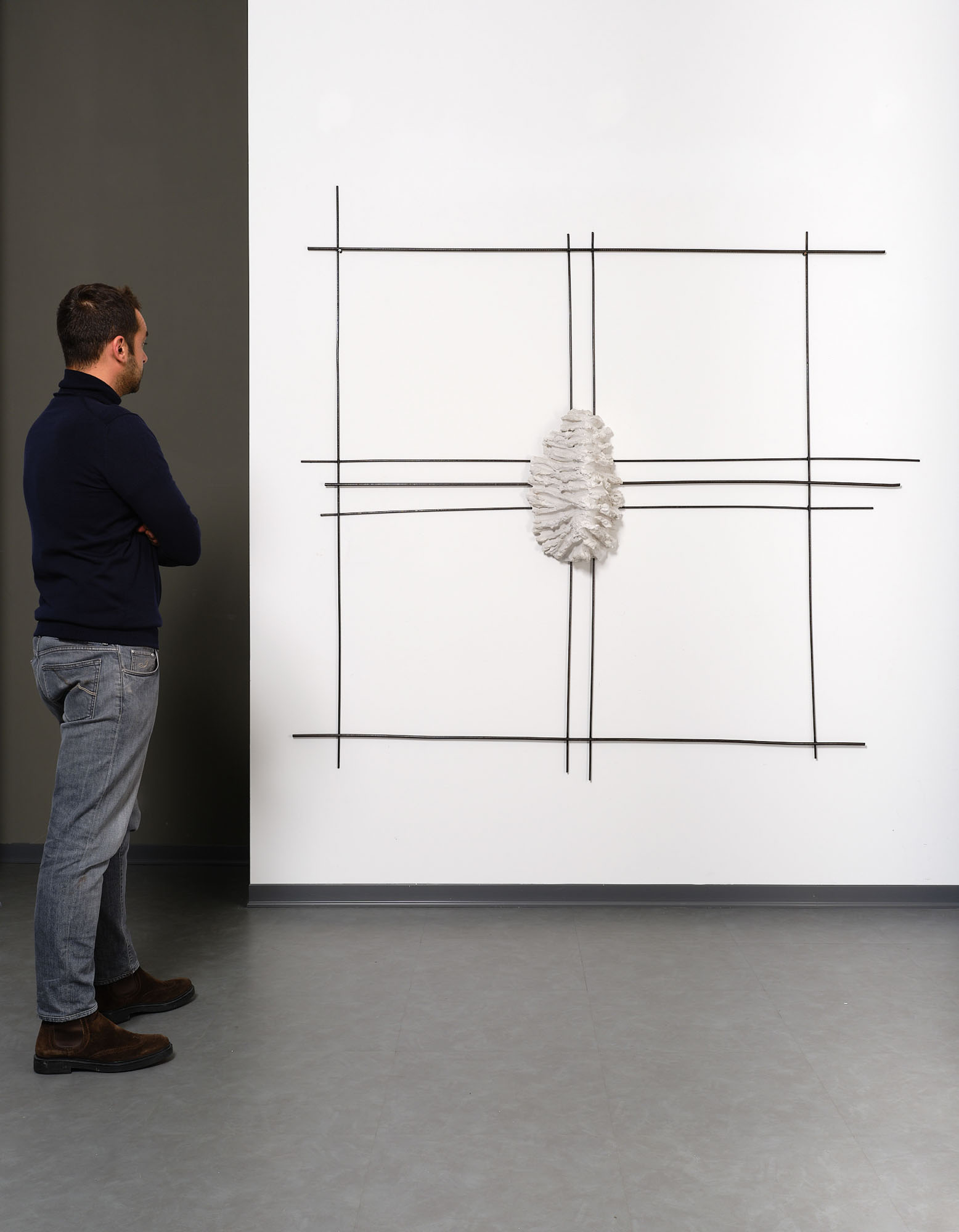Scultura in acciaio e gesso, cm. 205 x 216 x 25