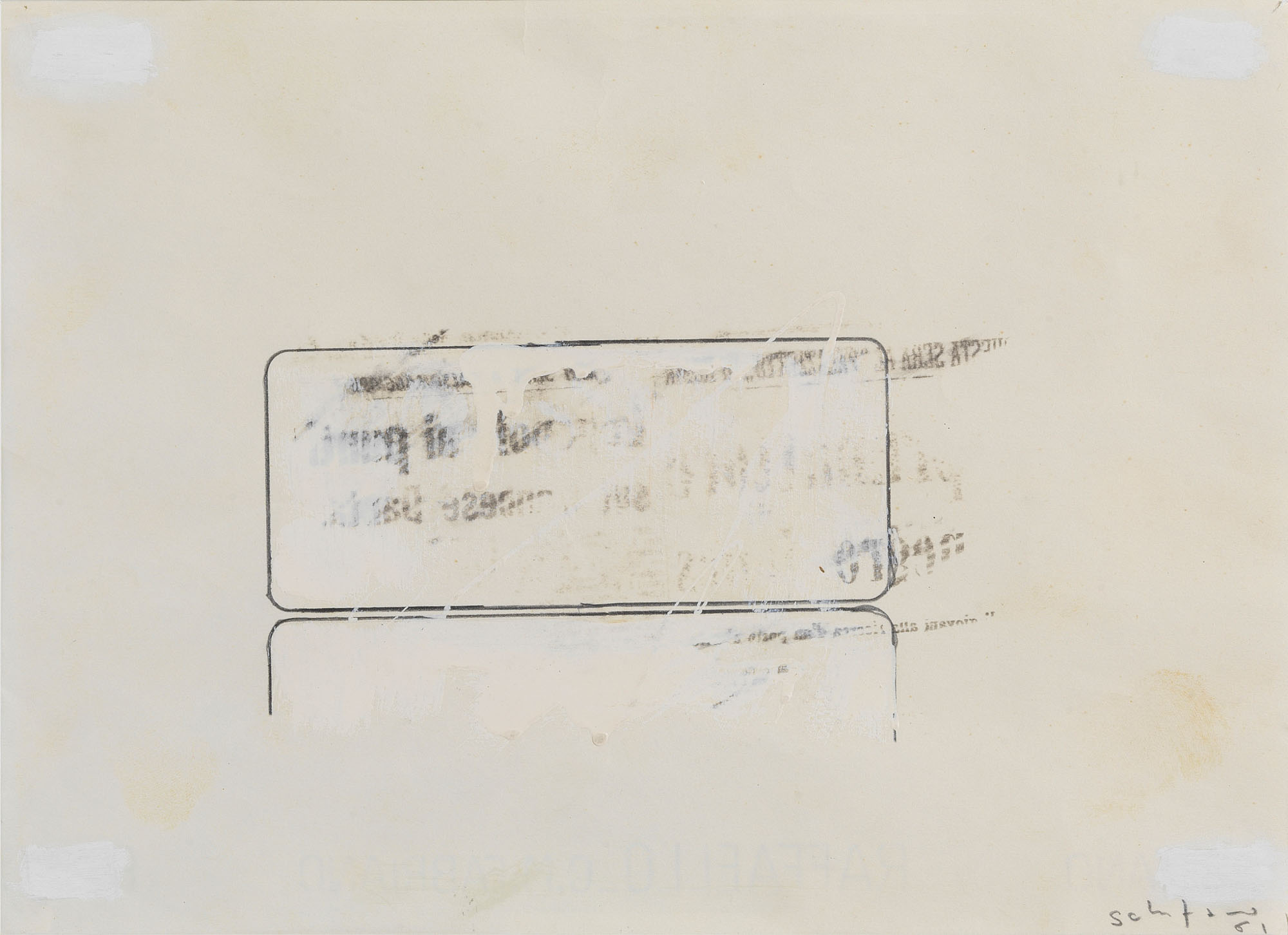 Smalto, grafite e riporto al solvente di stampa quotidiano su carta, cm. 23,1 x 31,8