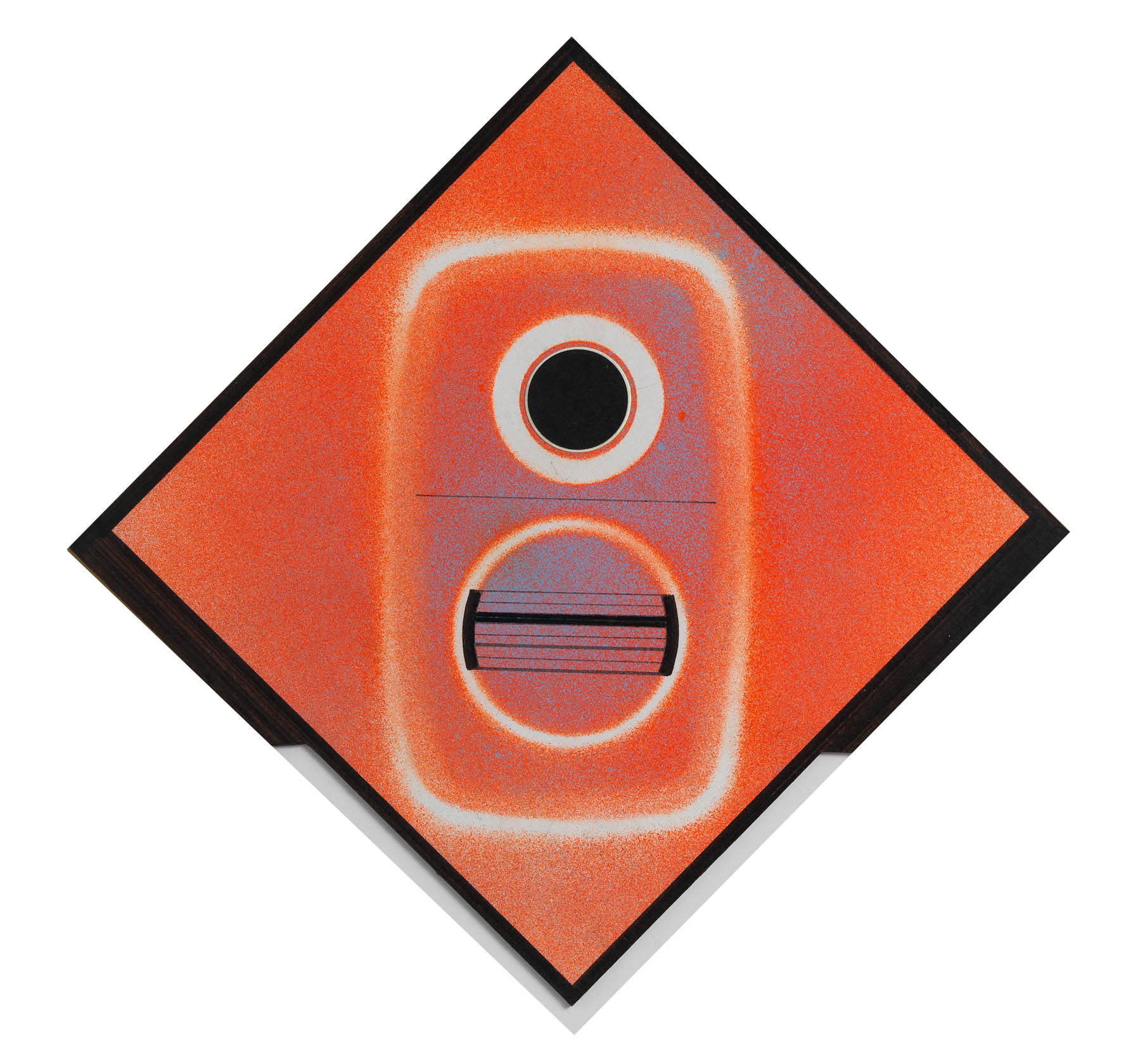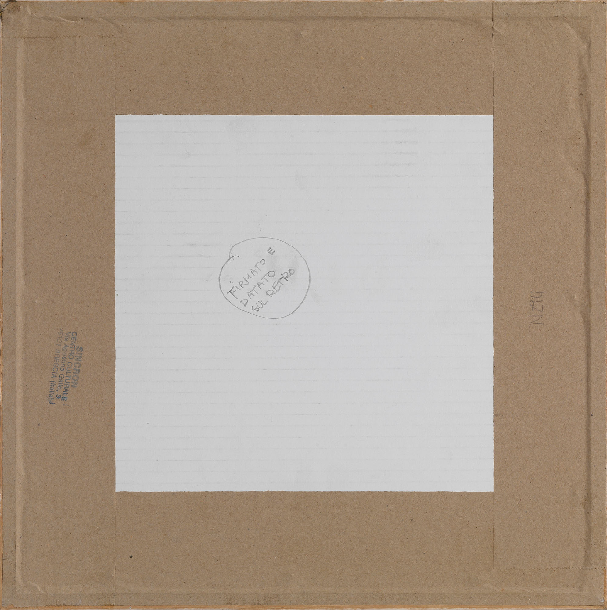 Tecnica mista e collage su cartone sagomato, cm. 27,5 x 28,5 (lato cm. 20 x 20)