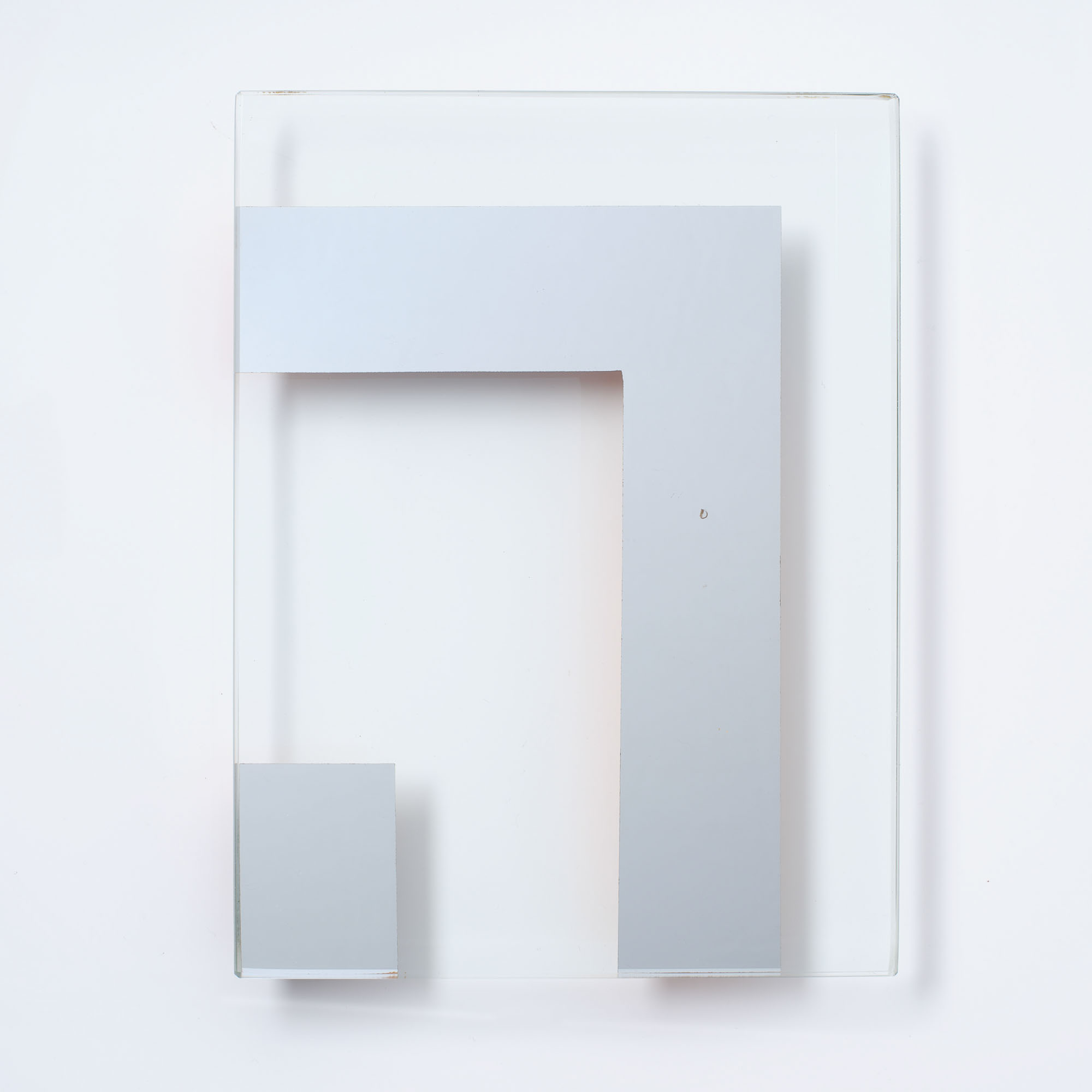 Scultura in vetro, specchio e alluminio, cm. 24 x 18 x 0,6