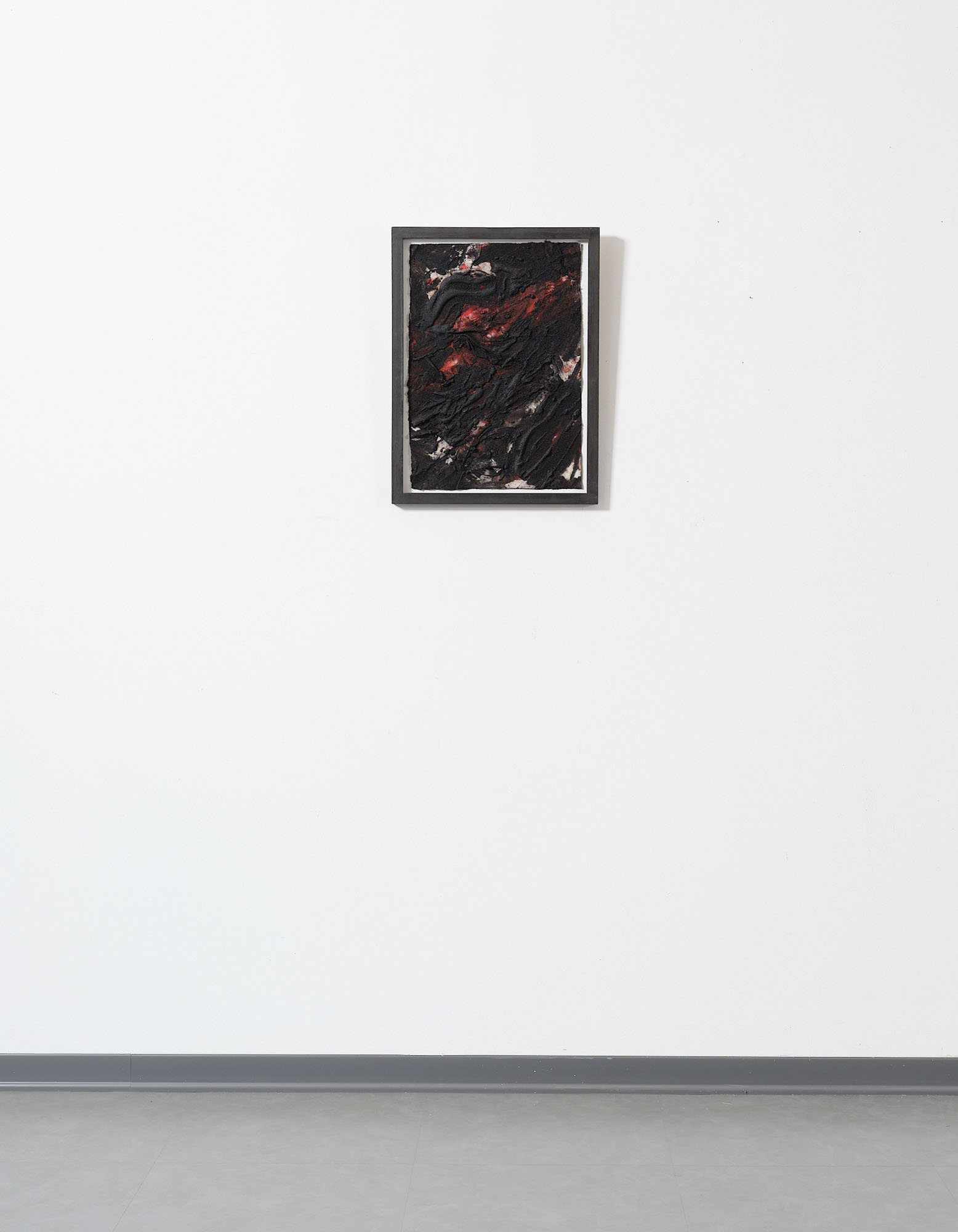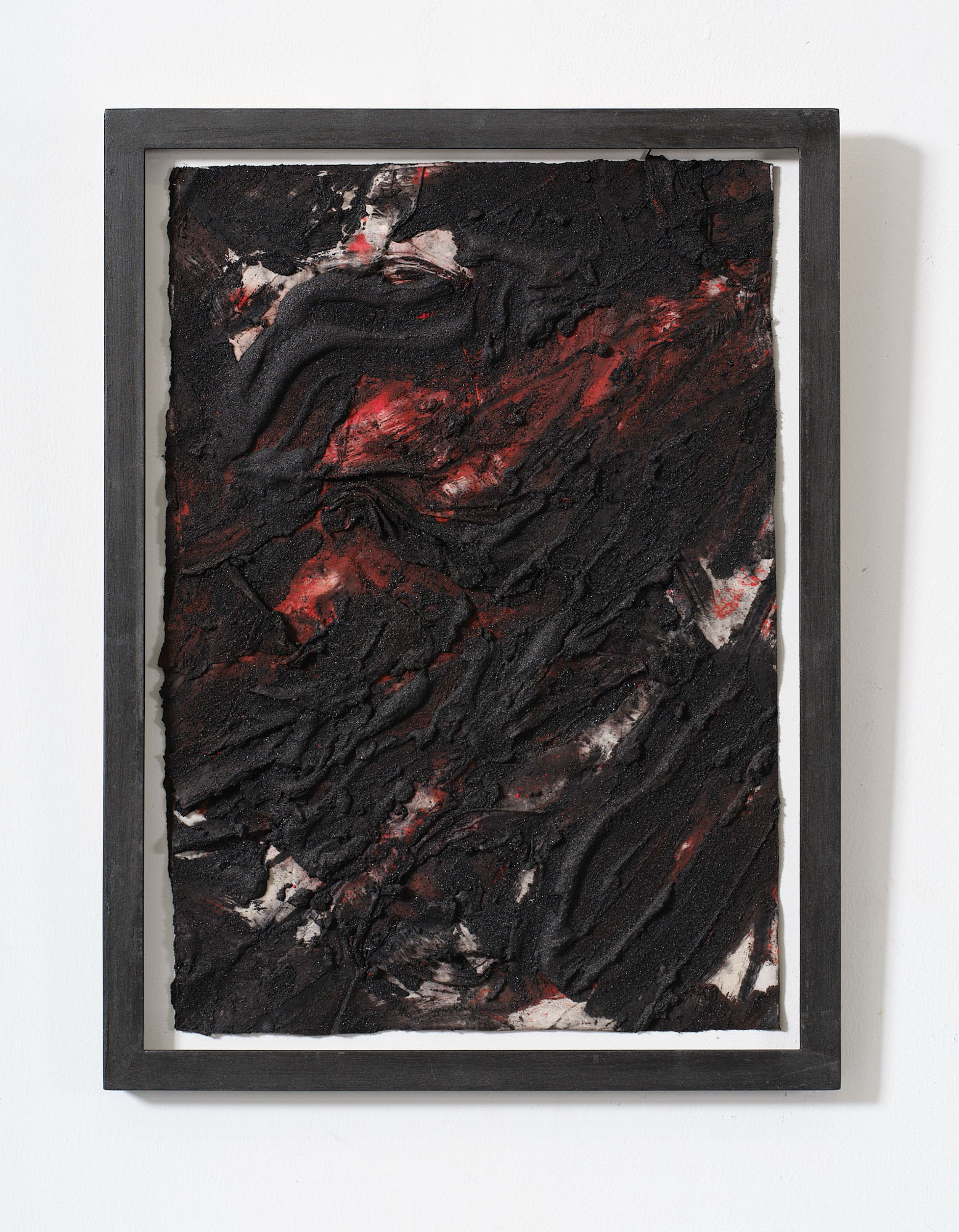 Carbone, ossido di ferro, sabbia di vulcano e rosso cadmio su carte sovrapposte, cm. 53 x 37