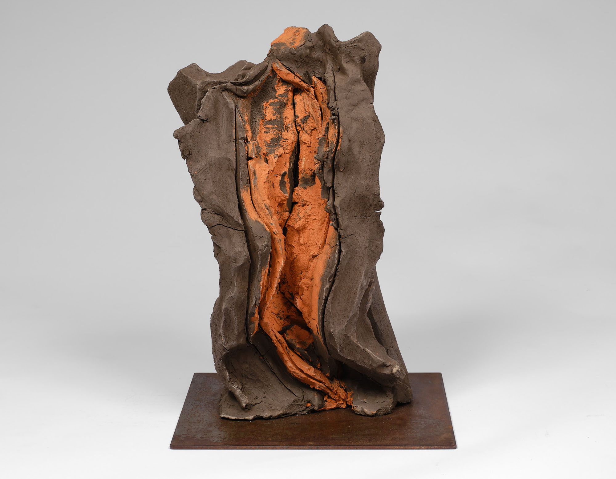 Scultura in terracotta policroma, cm 54 x 29 x 15 (base cm. 38 x 32)