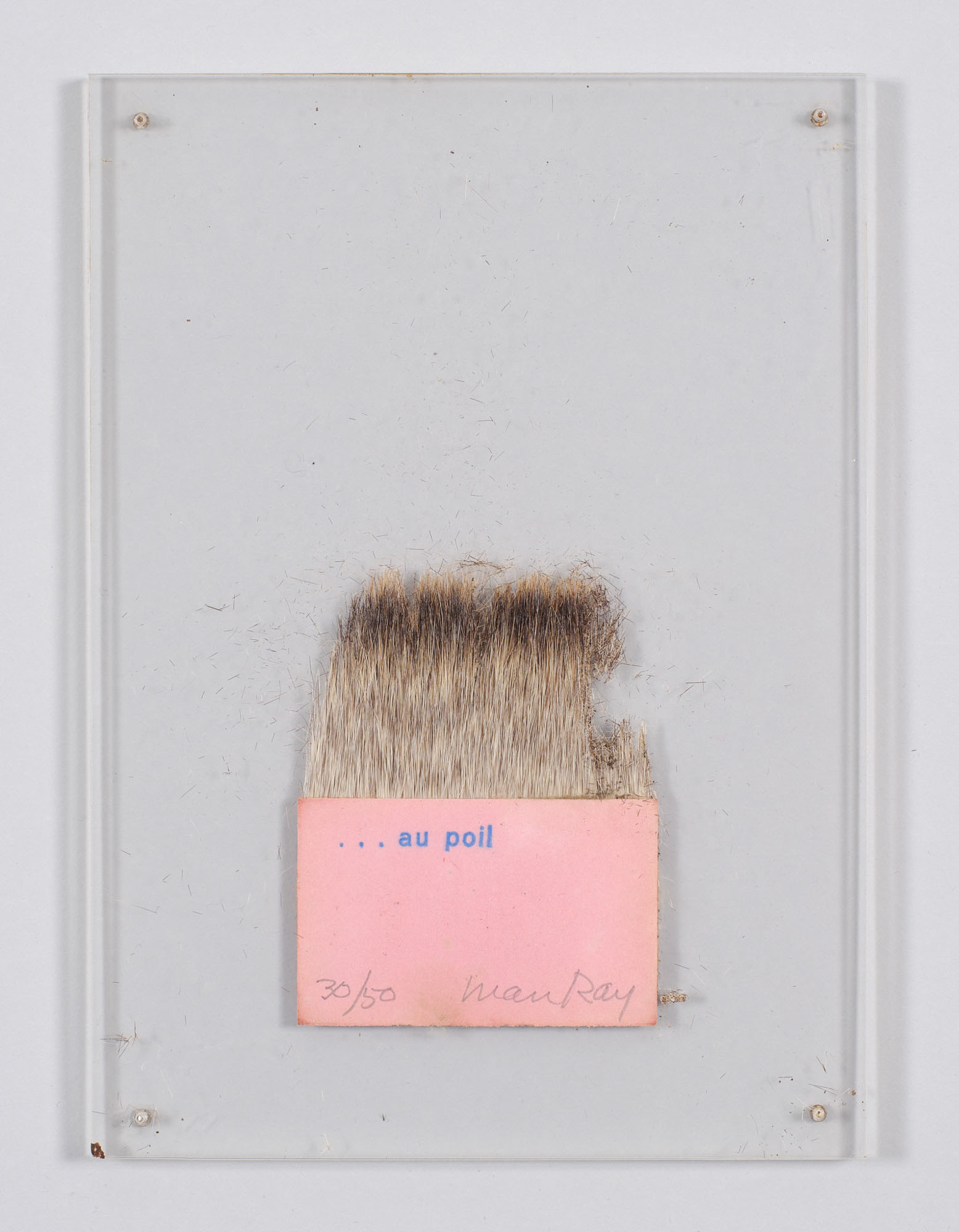 Multiplo, setole di pennello per doratura e carta rosa montata tra due pannelli di plexiglas, cm. 24 x 17