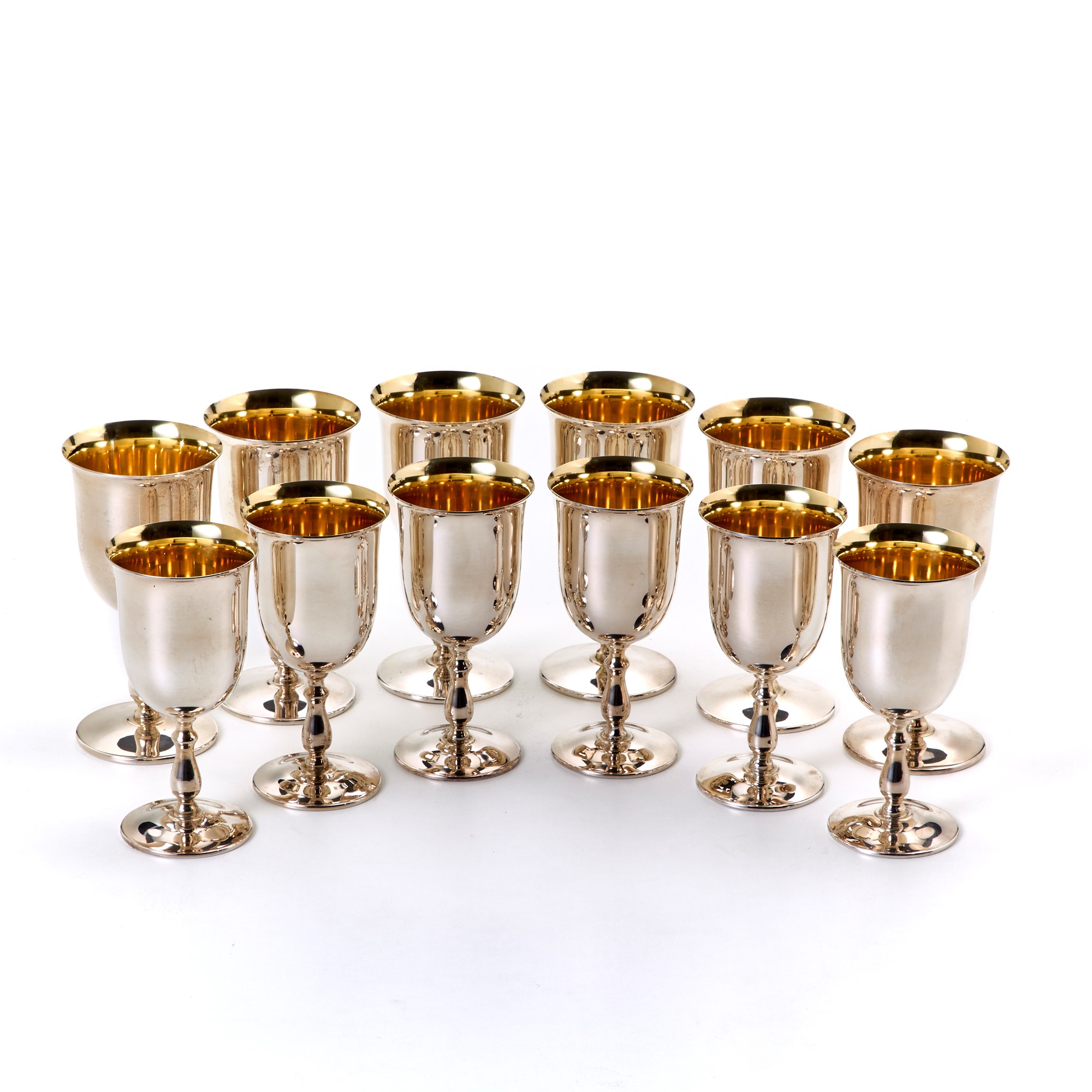 Lotto composto da sei calici da vino e sei da acqua a corpo liscio in argento