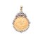 18 Kt yellow and white gold pendant with 22 Kt yellow gold Ottoman coin and round, marquise and tapered diamonds totalling approximately 1,10 ct