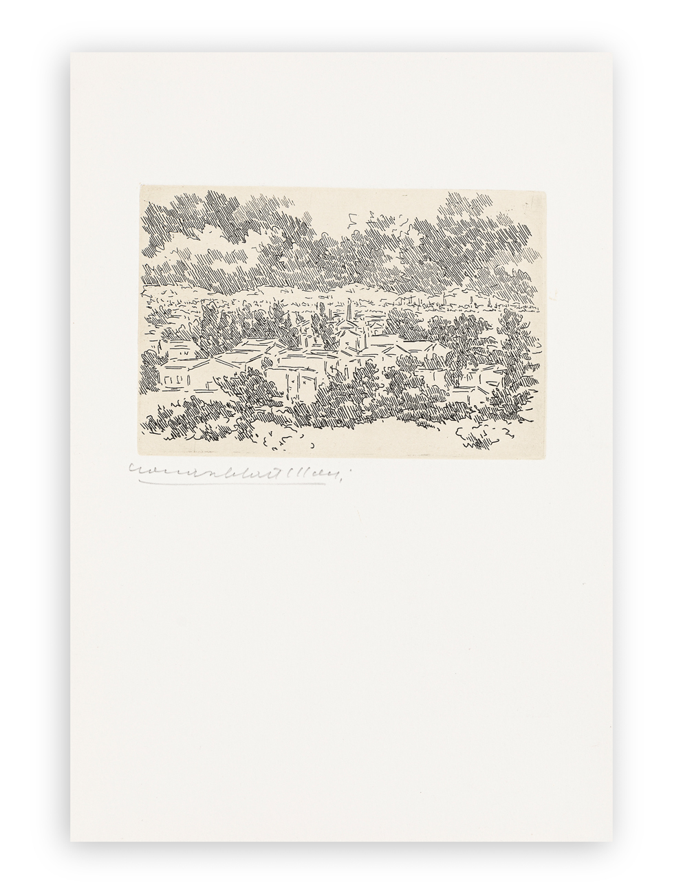 Edizione d'arte contenente un volume recante uno scritto e 5 acqueforti di Leonardo Castellani e un'ulteriore suite con 10 acqueforti sciolte di Leonardo Castellani, ciascuna recante firma a matita al fronte