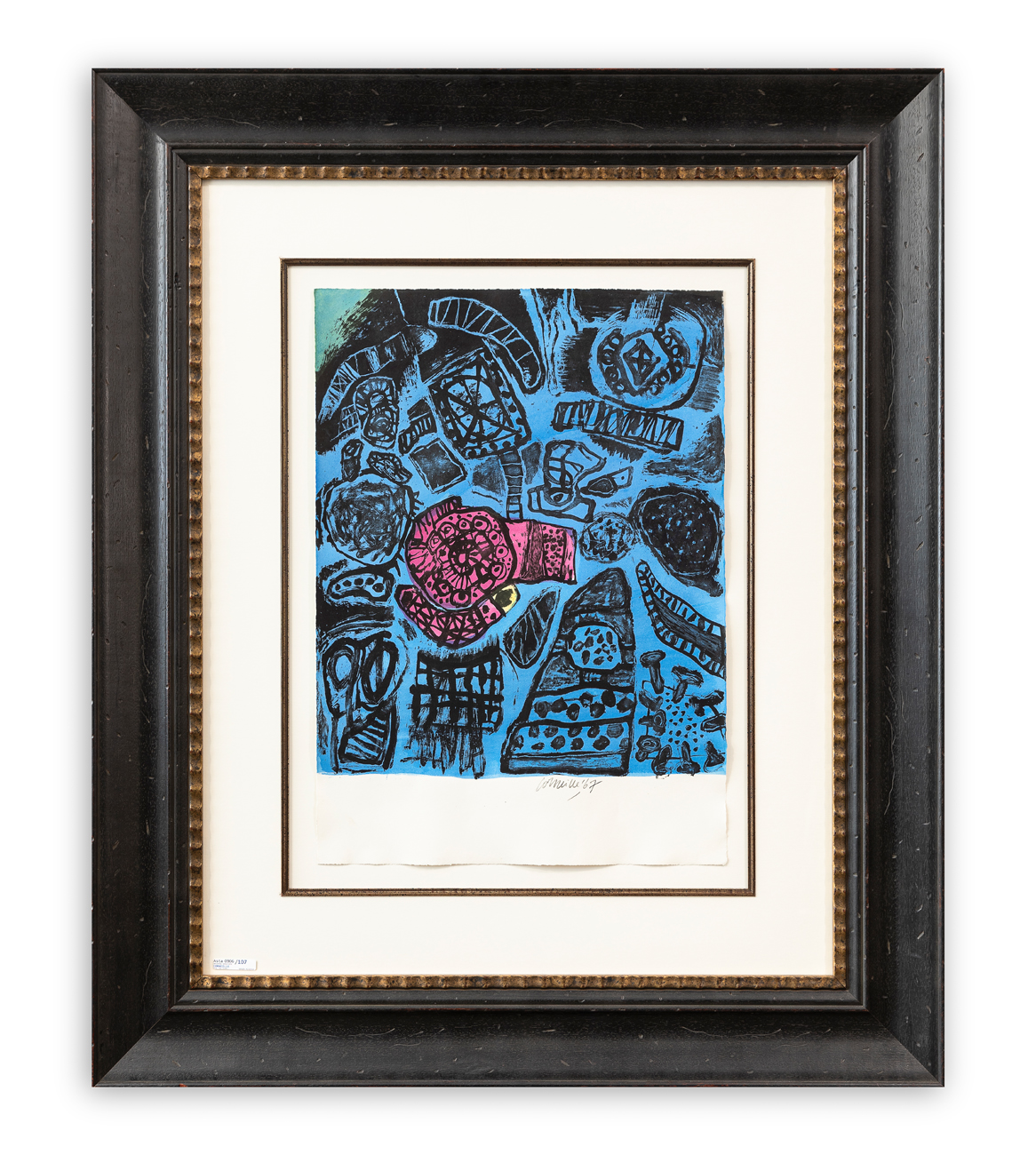 Litografia colorata a mano applicata su masonite - Esemplare unico