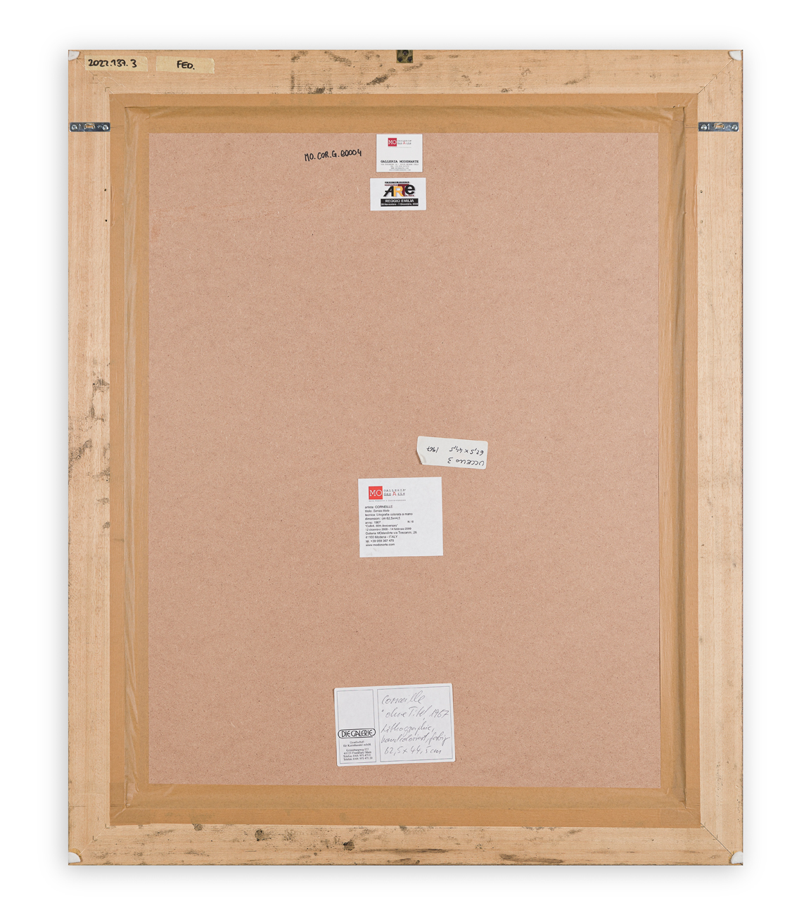 Etichetta della Die Galerie (FRANCOFORTE) al retro della tavola protettiva