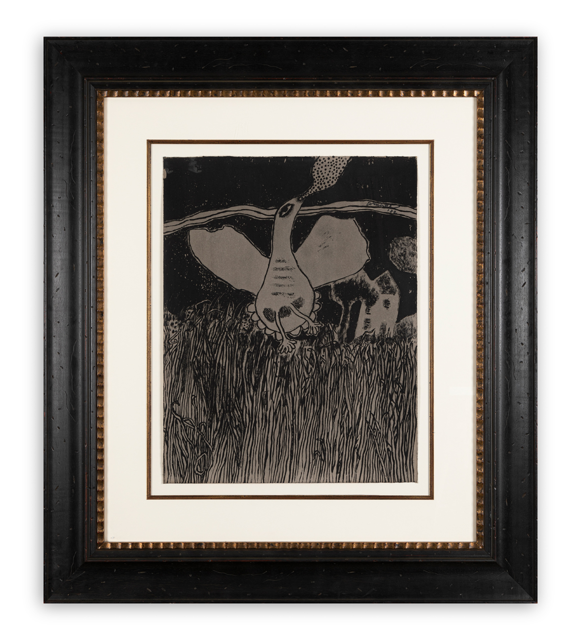 Litografia colorata a mano applicata su masonite - Esemplare unico