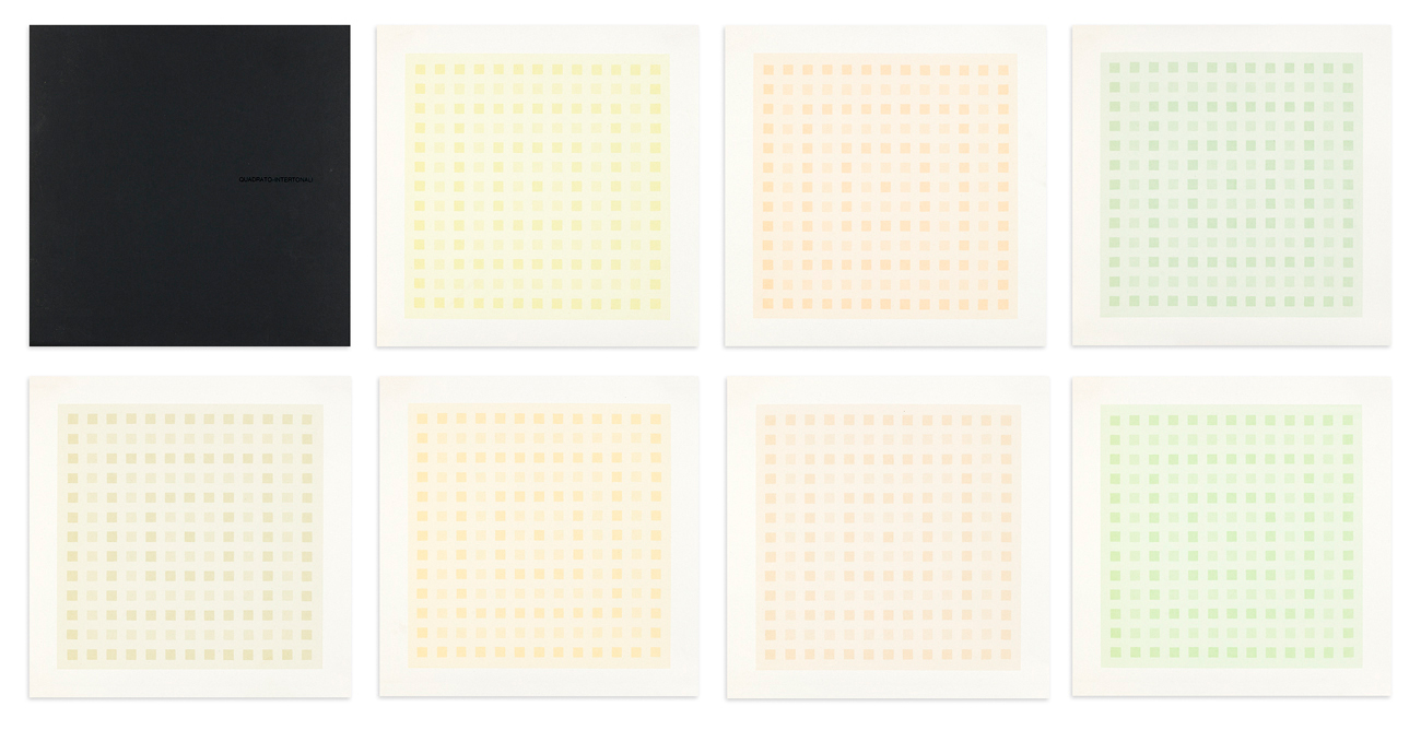 - Quadrato-intertonali: sette frequenze serigrafiche di Antonio Calderara situate da un testo-poema inedito di Carlo Belloli edite da Lucini in Milano, 1974