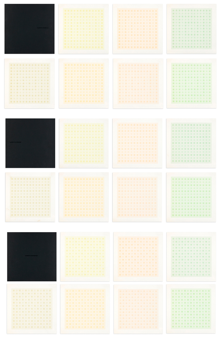 - Quadrato-alternanze: sette frequenze serigrafiche di Antonio Calderara situate da un testo-poema inedito di Carlo Belloli edite da Lucini in Milano, 1974
