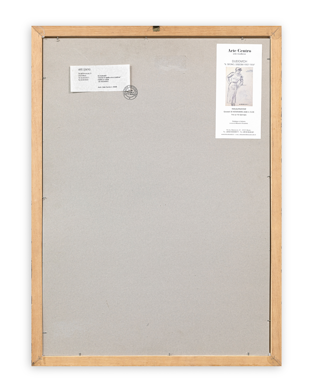 Etichetta e timbro della Galleria Arte Centro (MI) al retro del cartone protettivo