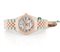 Diam. mm 31. C. stainless steel and 18K pink gold with screwed case back and crown, diamond bezel and sapphire crystal (mint). D. flowers mother-of-pearl with applied pink gold Roman numerals, diamond index IV , centre seconds and date at 3 (original, as new). M. self-winding (as new). Stainless steel and 18K pink gold Jubilè bracelet with hidden clasp. Dial, case, movement and bracelet signed. Accompanied by Rolex box and certificate.
