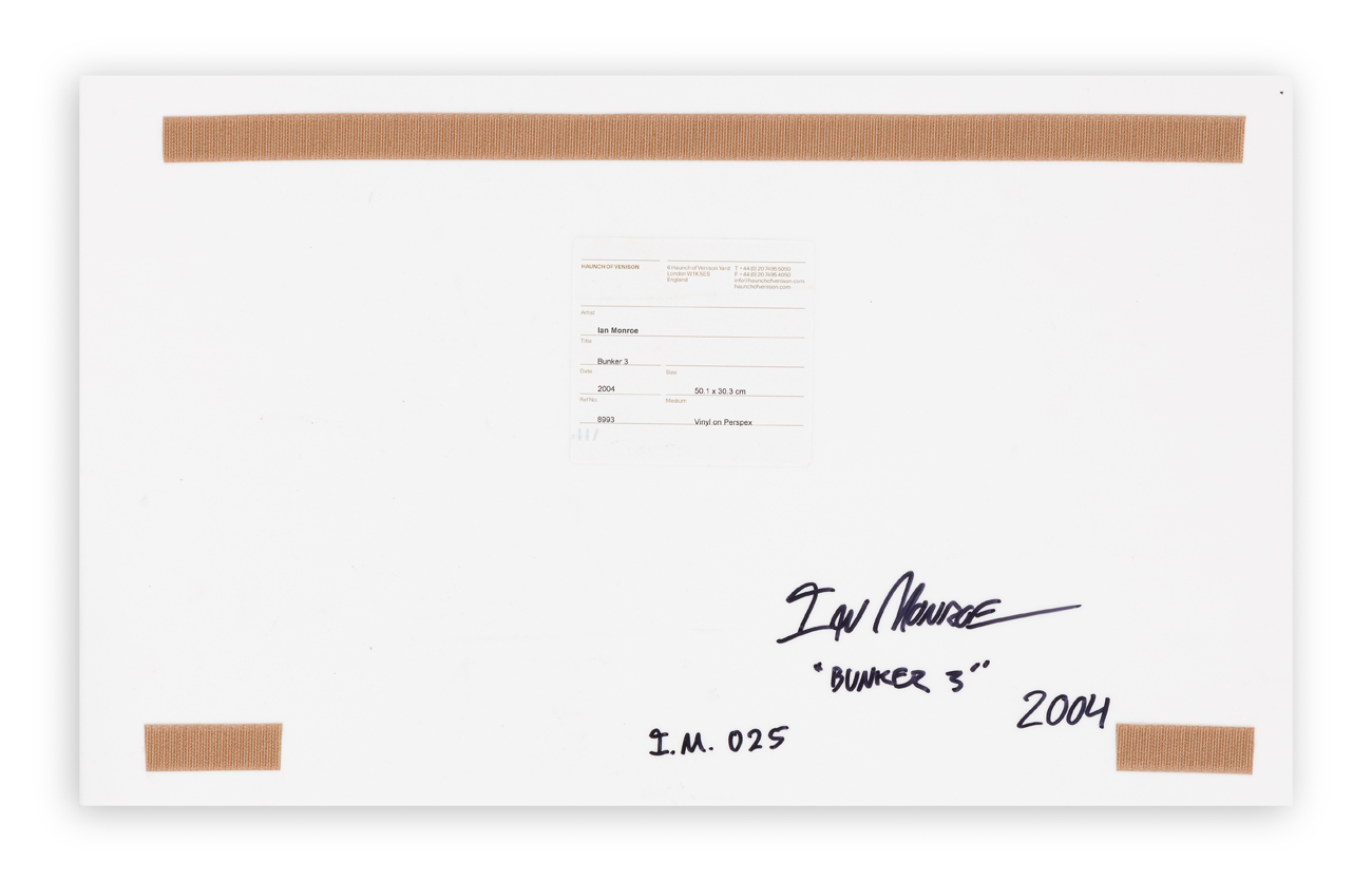 Etichetta della Galleria Haunch of Venison (LONDRA) con caratteristiche tecniche dell'opera al retro